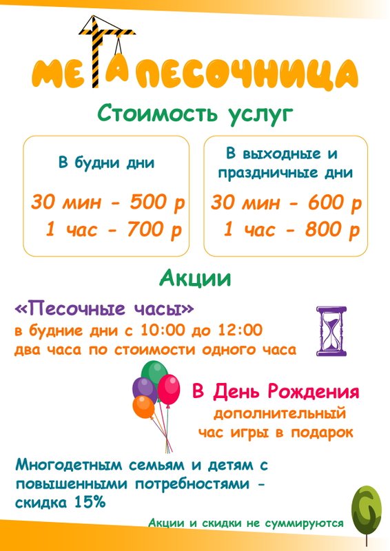 Сюда принимают тех, кто жаждет интересных впечатлений и веселых развлечений. Мега Песочница позволяет не только с комфортом провести время маленьким исследователям, но и провести торжества.