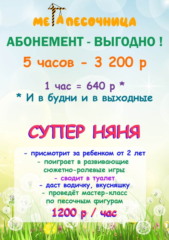 Здесь с любовью развивают интеллект детей и подготавливают их к взрослой жизни в новейшей информационной эпохе. Педагоги не только занимаются подготовкой к детскому саду и школе, обучая различным навыкам и техникам коммуникации. Именно после таких занятий детки начинают осознавать себя как взрослые личности и уже в раннем возрасте начинают понимать, чем хотят заниматься в жизни. Дети - это наше будущее, а значит, им стоит отдавать все самое лучшее. Игровая комната Мега Песочница предлагает вам достойное место, где готовы развивать интеллект ваших детей, учить их навыкам общения, показывать пример искренней дружбы, а также учить их не бояться всех трудностей, которые могут встретиться на жизненном пути.